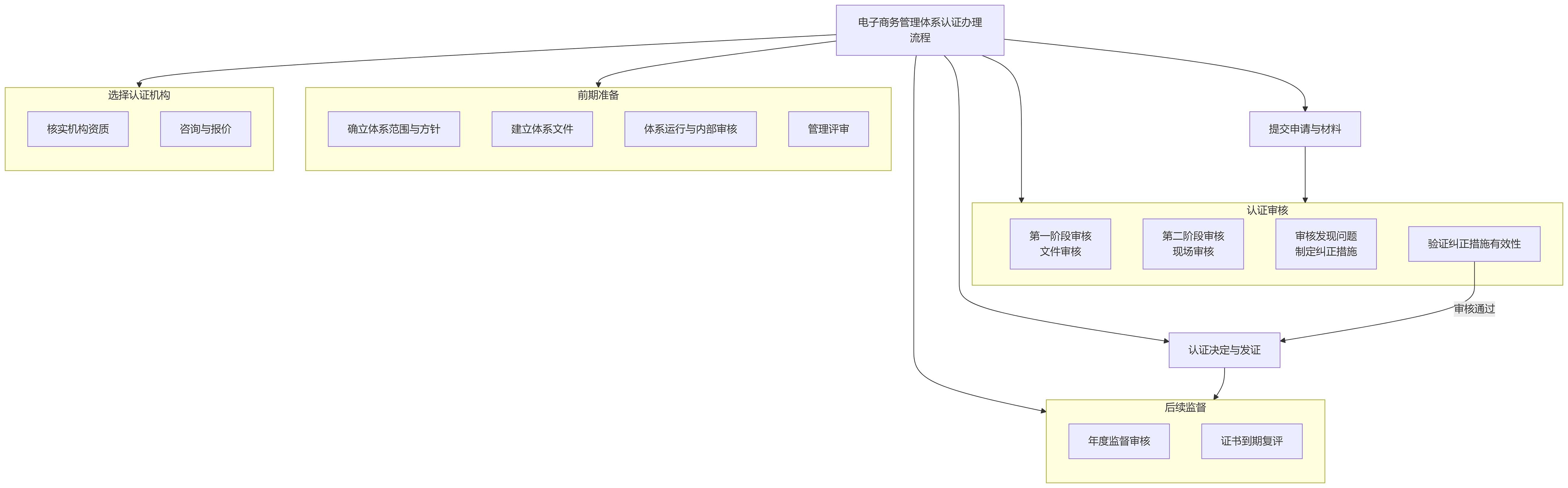 上图展示了认证的主要阶段,其中前期准备和认证审核是关键。
