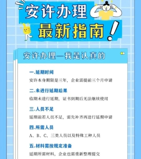 安全生产许可证有效期为3年,需在到期前3个月申请延期