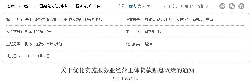 十二、其他有关事项。鼓励各类经营主体结合自身资金使用需求,采用随借随还用款模式,灵活支用与偿还贷款资金。对逾期、不良的服务业经营主体贷款,财政部门不予贴息。本通知自2026年1月1日起施行,财金〔2025〕81号文件有关规定与本通知不一致的,以本通知为准。其他未尽事项,按照财金〔2025〕81号文件执行。
