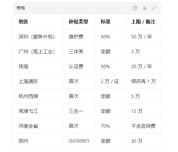 中小微企业:按认证费用50%补贴,单企业年度上限10万元。