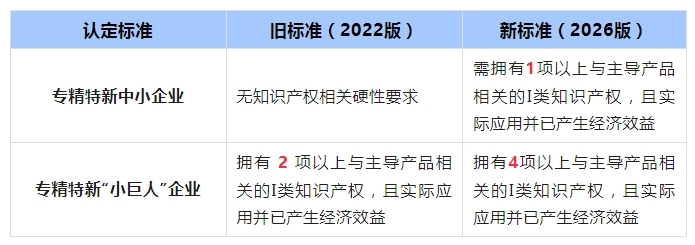 知识产权方面认定标准对比: