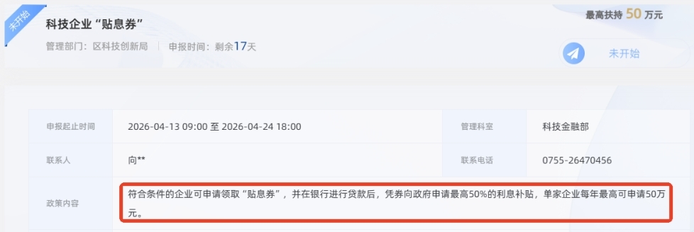 南山区科技金融部科技企业"贴息券"项目申请