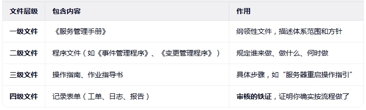 不要直接照搬网上的模板,否则审核时一定会露馅。需要建立一套“四级文件体系”: