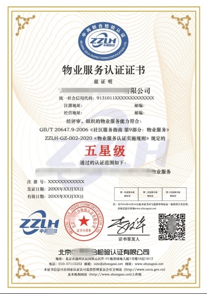 颁发证书:评审合格后,认证机构为企业颁发五星级物业服务认证证书。