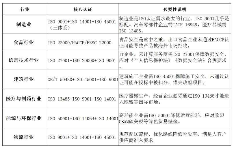 这些行业必须要做ISO认证: