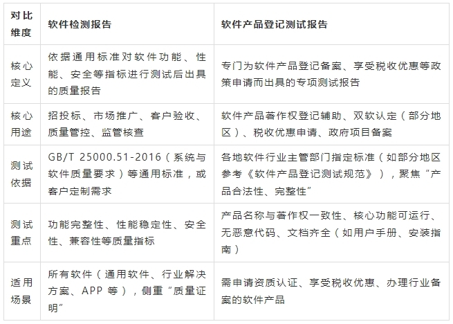 软件检测报告和产品登记测试报告有什么区别?
