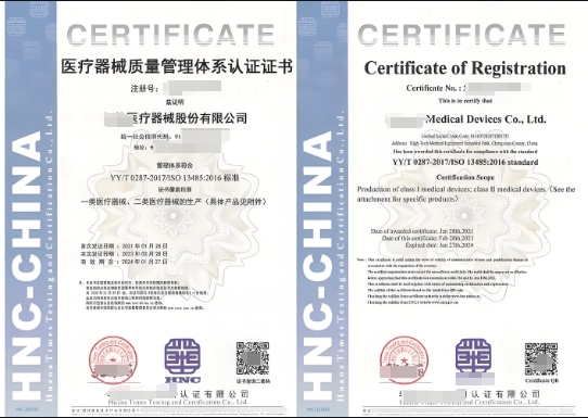 所有信息需与营业执照、医疗器械相关许可/备案证一致,不可遗漏;认证范围需明确医疗器械品类(如:三类植入式心脏起搏器的研发、生产、销售及售后服务)。